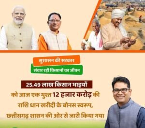 रायगढ़ :- प्रदेश के 25.49 लाख किसान भाइयों के खाते में धान बोनस की 12 हजार करोड़ की राशि हस्तांतरित होने की जानकारी देते हुए सूबे के वित्त मंत्री विधायक रायगढ़ ओपी चौधरी ने कहा सुशासन की विष्णु देव साय सरकार के निर्णयों से किसान भाइयों के जीवन में खुशहाली आ रही है। विधायक ओपी ने कहा कांग्रेस का प्रधान मंत्री रहे स्वर्गीय राजीव गांधी ने कहा था जनता तक एक रुपया भेजा था लेकिन उन तक केवल 15 पैसा ही पहुंचता था लेकिन मोदी सरकार ने जब जन धन योजना के तहत 53 करोड़ खाते खोले गए तब विपक्ष मे रहते कांग्रेस ने इस योजना का उपहास उड़ाया था। उन्हीं खातों में गरीबों के लिए शुरू की गई बहुत ही कल्याणकारी योजनाओं की राशि सीधे हस्तांतरित की जा रही है। समय रहते जिन समस्याओं का समाधान कांग्रेस खोज नहीं पाई भाजपा ने समस्याओं का स्थाई समाधान किया। कर्ज लेकर खेती किसानी करने वाले किसान भाइयों के लिए मोदी सरकार की किसान सम्मान निधि योजना शुरू की गई। किसानों को हर वर्ष खेती के पहले छह हजार रुपए दिए जाने की योजना वरदान साबित हो रही है इस योजना के तहत देश भर के 13 करोड़ किसान लाभान्वित हो रहे है। छह हजार रुपए की राशि तीन किश्त में सीधे खाते में हस्तांतरित की जाती है। खेती के पहले किसानों को साहूकारों से कर्ज लेना पड़ता था इसके लिए ब्याज चुकाना पड़ता था। मोदी सरकार के किसान सम्मान निधि योजना से किसानों के जीवन में समृद्धि आ रही है।